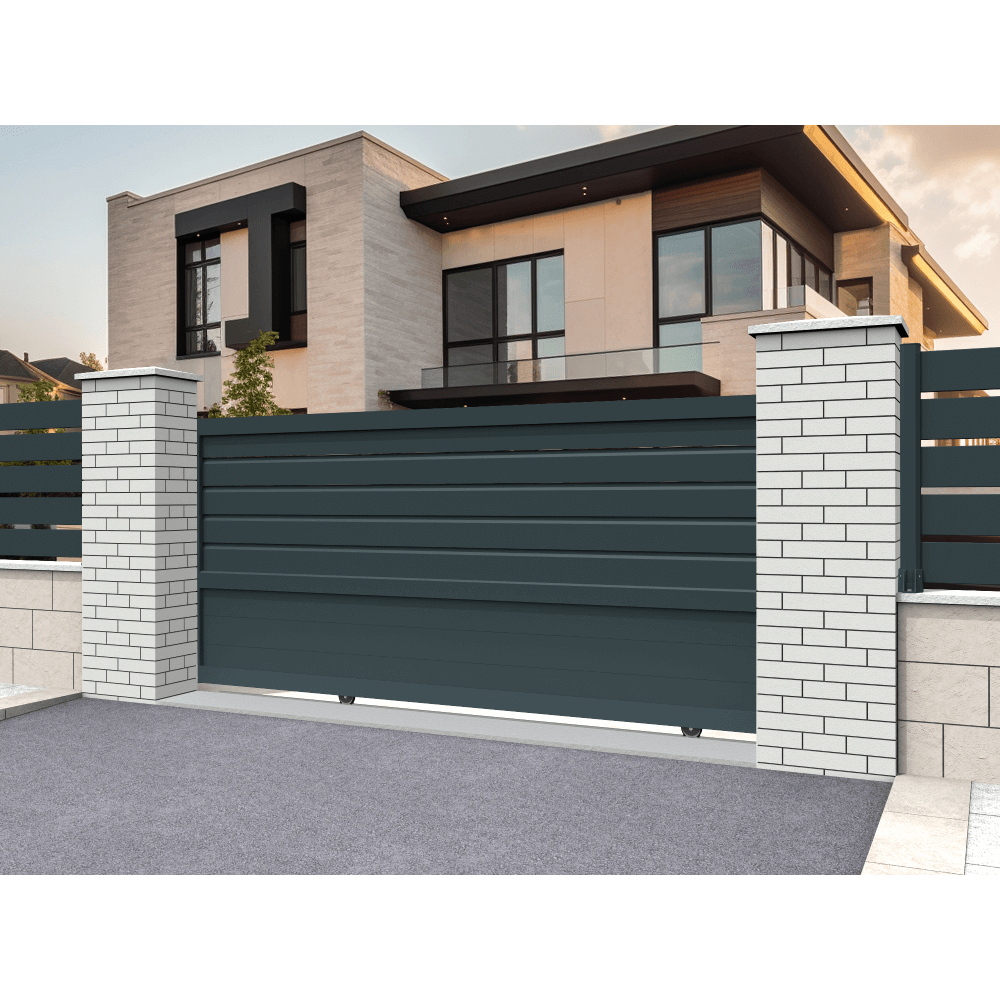 Le plus de ce portail coulissant ? Sa fabrication et sa conception française, en aluminium extrudé thermolaqué. Ce matériau est un des meilleurs choix du marché, de part sa légèreté combinée à sa durabilité et sa robustesse. Le thermolaquage renforce ses propriétés et son rendu : c’est un matériau non corrosif qui sublimera votre entrée sans demander beaucoup d’entretien. Contrairement au PVC ou au bois, l’aluminium vous permettra de profiter de votre équipement sur de nombreuses années sans altérations.
